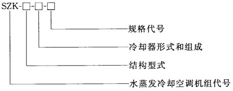 臥式水直接蒸發(fā)冷卻機組,額定風量為5000m3/h標記為:SZK-W-ZZ-5。