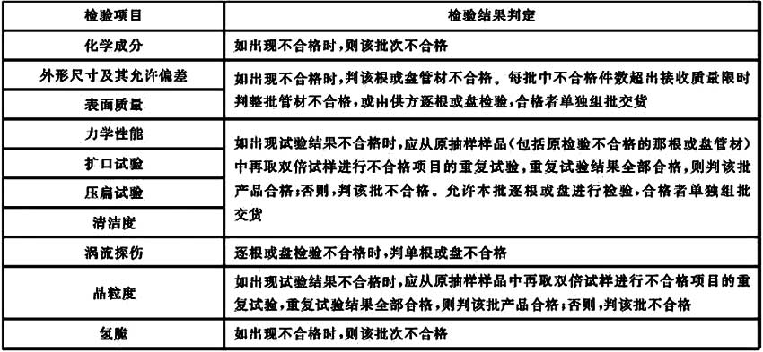管材的檢驗(yàn)結(jié)果按照表14規(guī)定進(jìn)行判定。