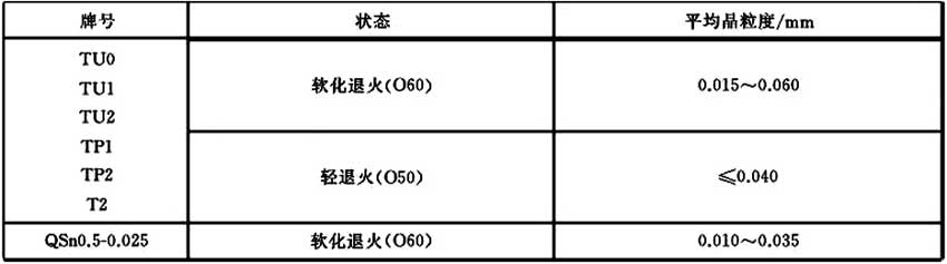 管材的平均晶粒度應(yīng)符合表10的規(guī)定。
