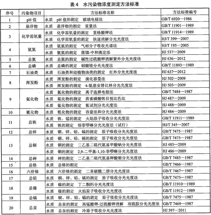5.6 對企業(yè)排放水污染物濃度的測定采用表4所列的方法標(biāo)準(zhǔn)。