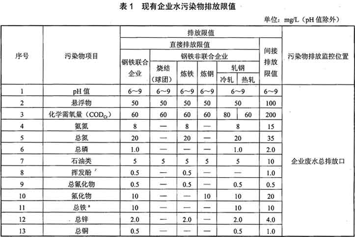 本標(biāo)準(zhǔn)適用于現(xiàn)有鋼鐵生產(chǎn)企業(yè)或生產(chǎn)設(shè)施的水污染物排放管理。