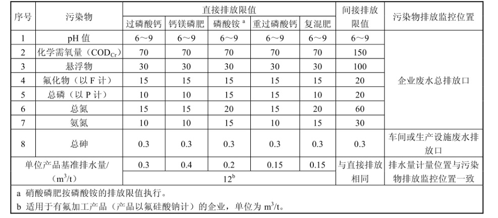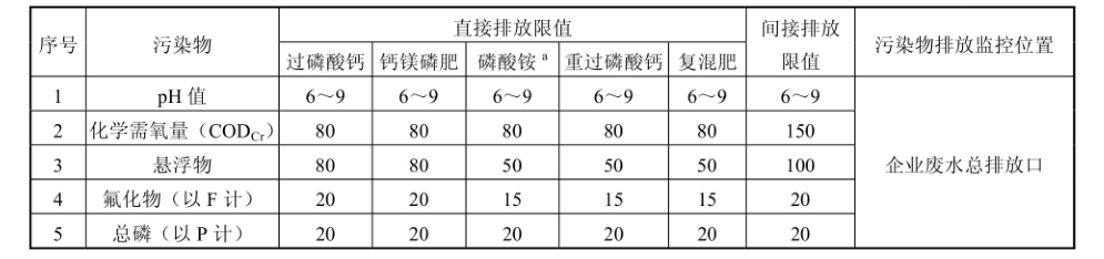 本標(biāo)準(zhǔn)規(guī)定了磷肥工業(yè)企業(yè)或生產(chǎn)設(shè)施水污染物排放限值。