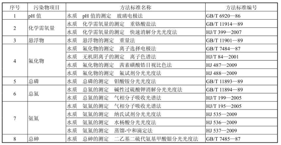 表4 水污染物濃度測定方法標(biāo)準(zhǔn)