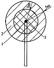 2 半徑3m,地坪上的高度1m,且在1區(qū)以外的區(qū)域,應(yīng)劃為2區(qū)。