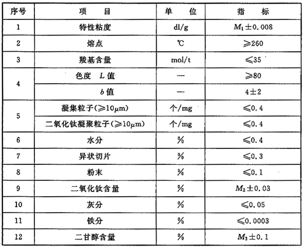 注:1 切片的分析方法應(yīng)按現(xiàn)行國家標(biāo)準《纖維級聚酯切片分析方法》GB/T14190執(zhí)行。
