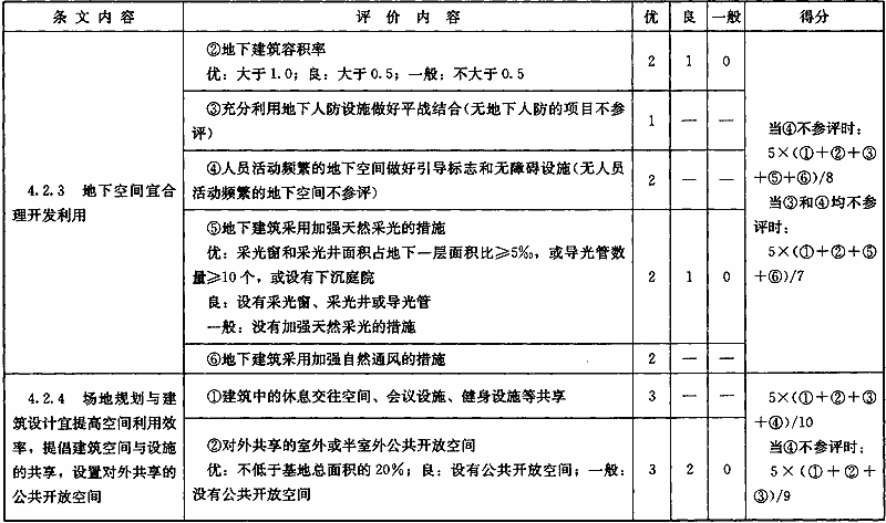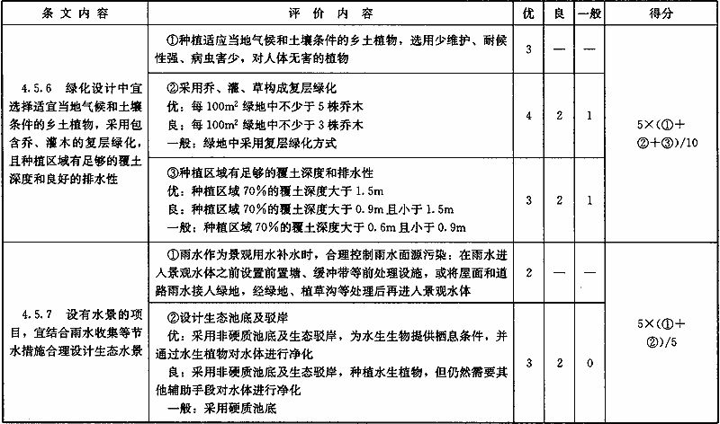 表B.0.1 “節(jié)地與室外環(huán)境”部分第三級(jí)評(píng)價(jià)指標(biāo)分值設(shè)置