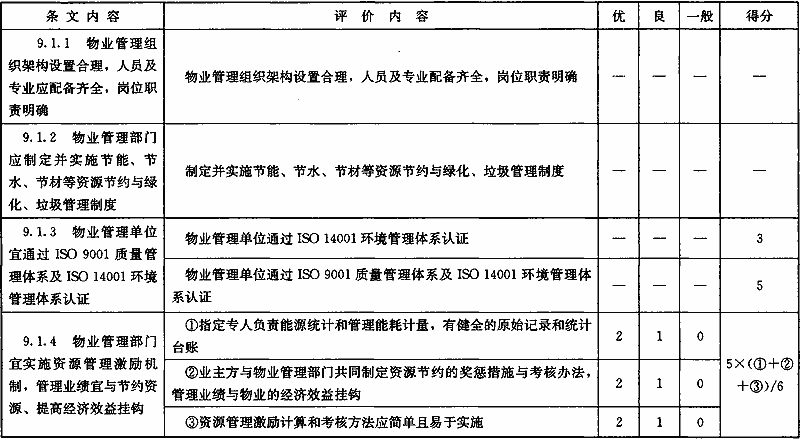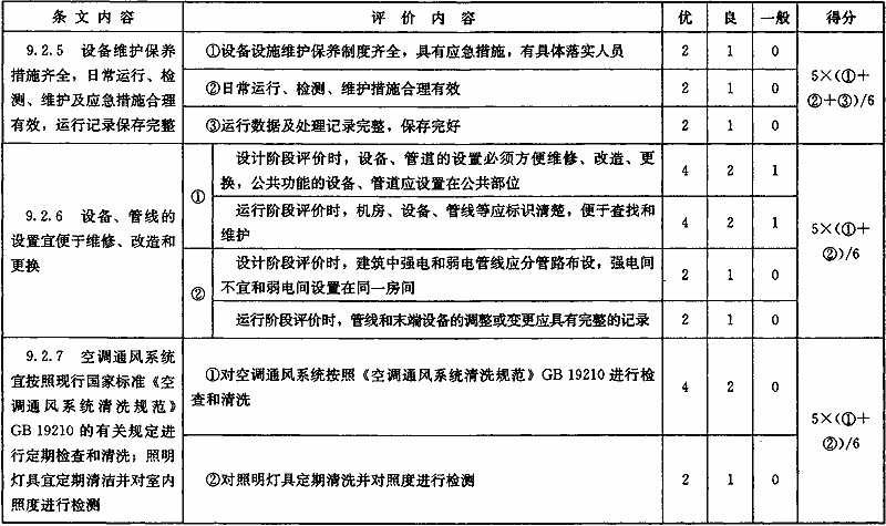 表B.0.6 “運(yùn)營(yíng)管理”部分第三級(jí)評(píng)價(jià)指標(biāo)分值設(shè)置