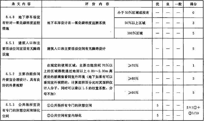 表B.0.5 “室內(nèi)環(huán)境質(zhì)量”部分第三級(jí)評(píng)價(jià)指標(biāo)分值設(shè)置