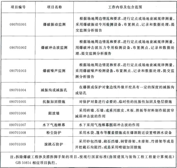 表G.1 爆破安全措施項(xiàng)目(編碼:090701)