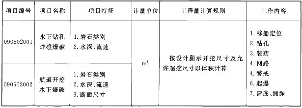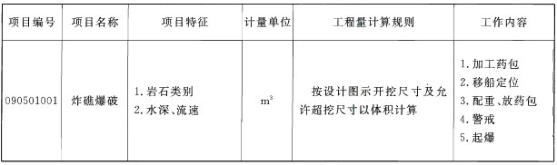 表E.2 水下鉆孔爆破工程(編碼:090502)