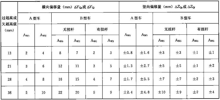 表D.0.2-1 A型車車體幾何偏移量