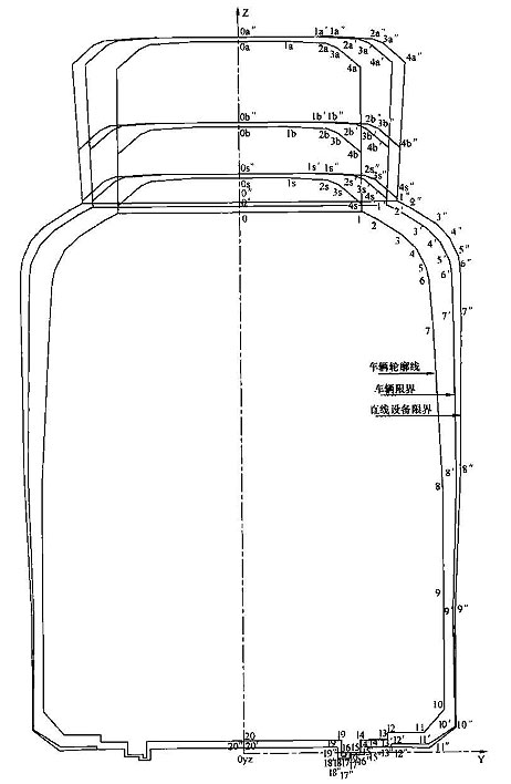 限定車輛運(yùn)行及軌道區(qū)周圍構(gòu)筑物超越的輪廓線,分車輛限界、設(shè)備限界和建筑限界。