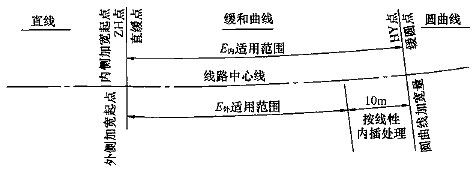圖E.0.5 緩和曲線段建筑限界加寬適用范圍示意