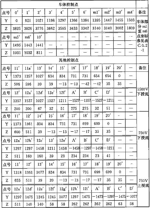 注:表中第m1~m6點(diǎn)是車門的控制點(diǎn);其余各點(diǎn)坐標(biāo)值參見表C.0.1-1。