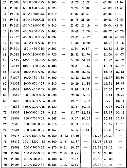 表D 組合鋼模板面積、質(zhì)量換算