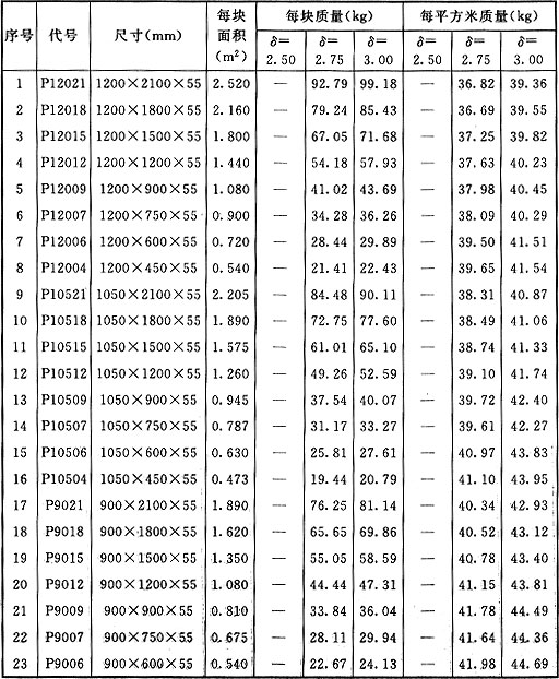 附錄D 組合鋼模板面積、質(zhì)量換算表