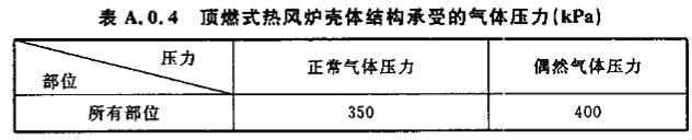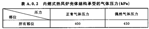 A.0.2內(nèi)燃式熱風(fēng)爐殼體結(jié)構(gòu)承受的氣體壓力,可按表A.0.2采用。