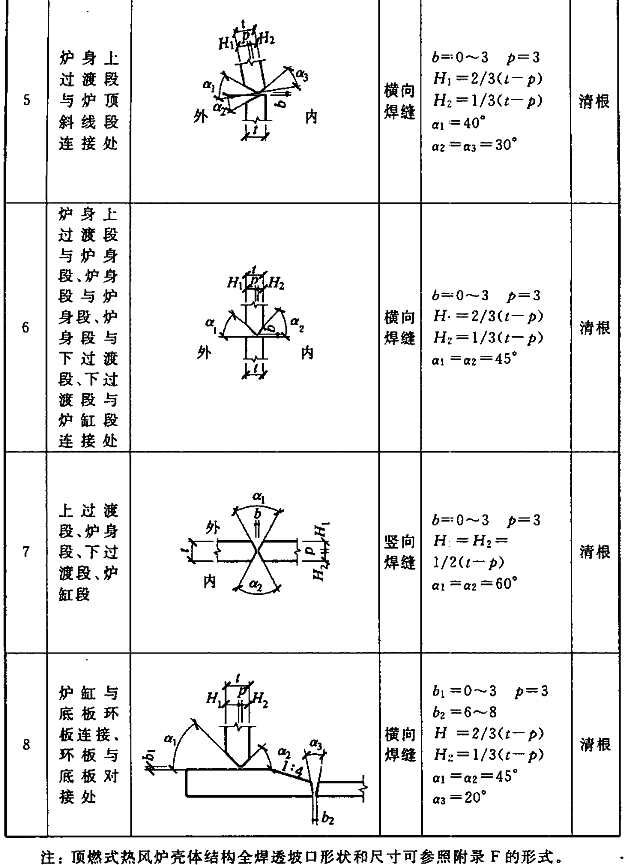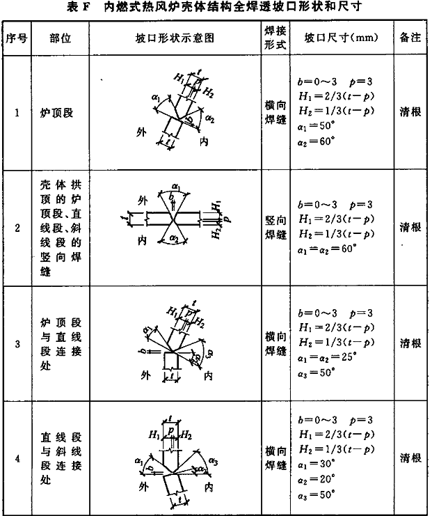 附錄F 內(nèi)燃式熱風(fēng)爐殼體結(jié)構(gòu)全焊透坡口形狀和尺寸