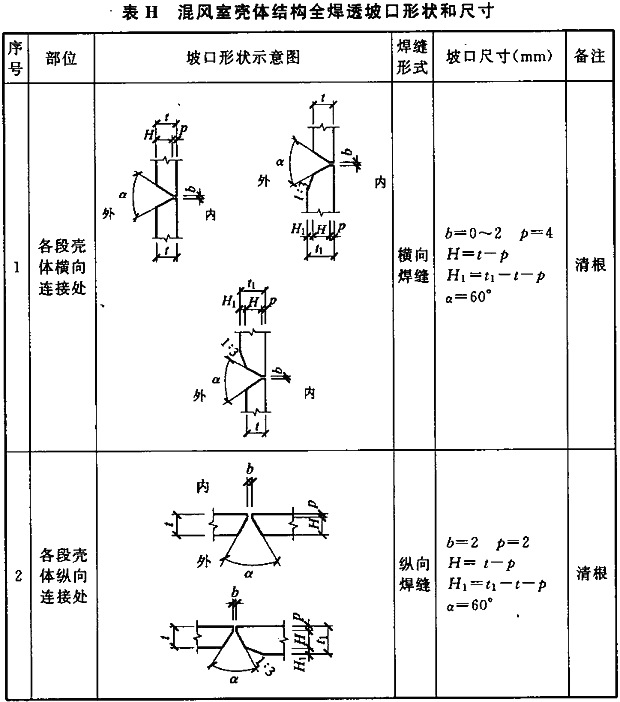 附錄H 混風(fēng)室殼體結(jié)構(gòu)全焊透坡口形狀和尺寸