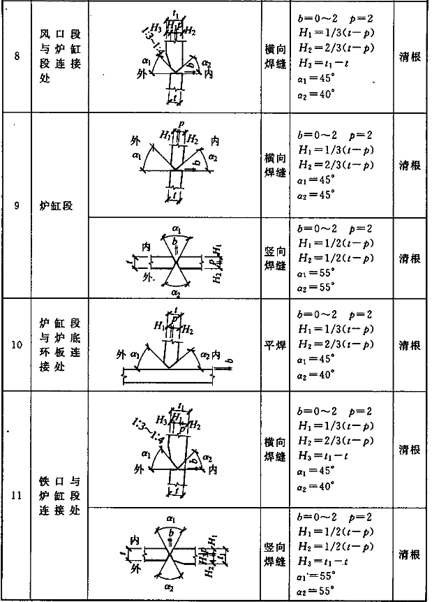 附錄E 高爐殼體結(jié)構(gòu)全焊透坡口形狀和尺寸