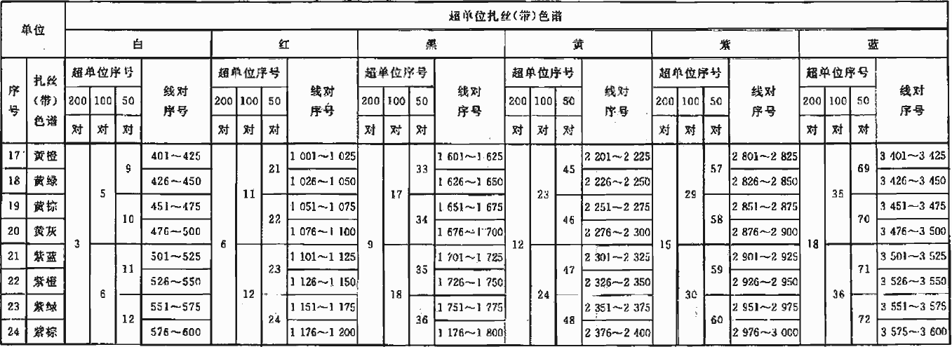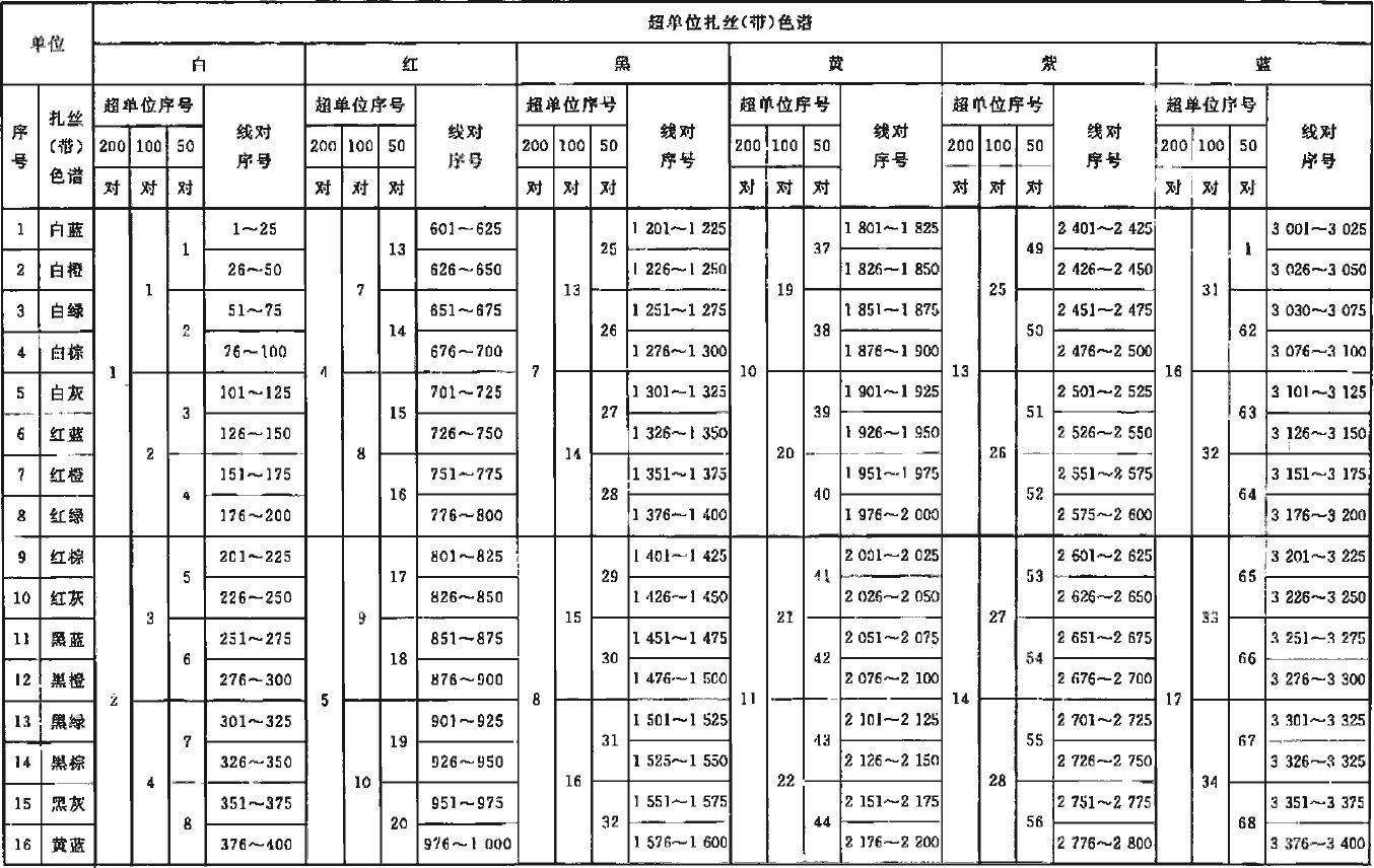 7.2 對線組絕緣單線顏色采用下列10種顏色:
