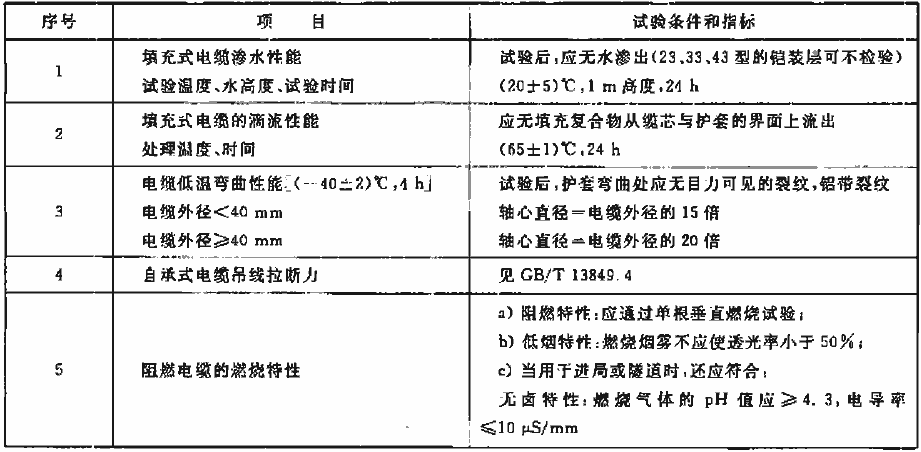 電纜的機械物理性能和環(huán)境性能應符合表8規(guī)定。