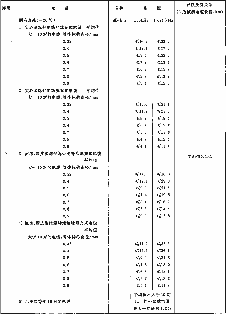 本部分規(guī)定的電纜可用于傳輸音頻信號和綜合業(yè)務數(shù)字網(wǎng)的2B+D速率及以下的數(shù)字信號,也可用于傳輸2048kbit/s的數(shù)字信號或150kHz以下的模擬信號。在一定條件下,也可用于傳輸2048kbit/s以上的數(shù)字信號。