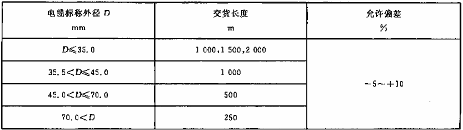 20.1 電纜的交貨長度應符合表9規(guī)定。允許以100m以上的短段交貨,其數(shù)量應不超過交貨長度的10%。
