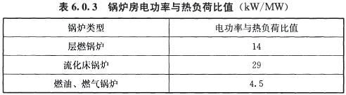 6.0.3 熱水鍋爐房(不包括熱網(wǎng)循環(huán)泵)總電功率與總熱負(fù)荷的比值不宜大于表6.0.3規(guī)定的數(shù)值。