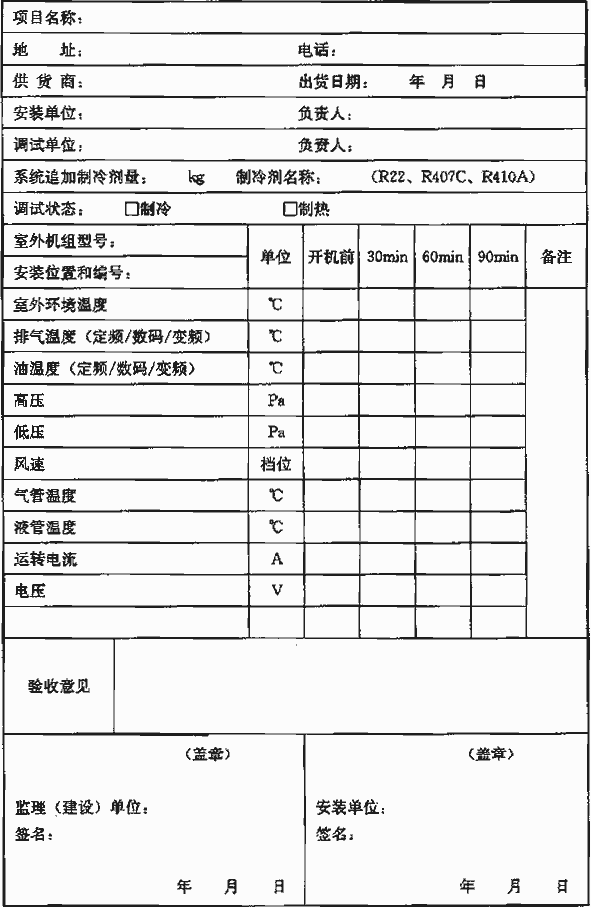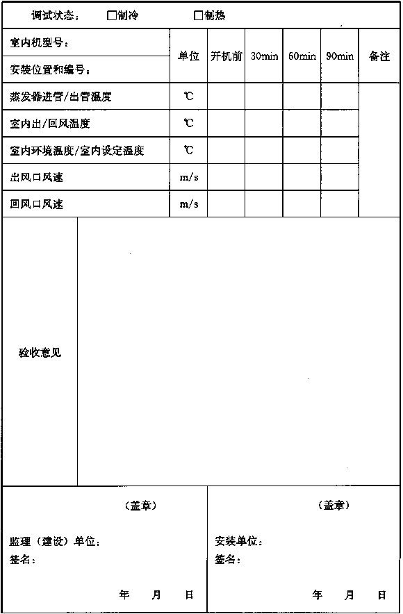 表A-5 室內(nèi)機組試運轉(zhuǎn)測試數(shù)據(jù)