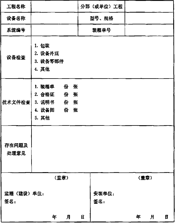 附錄A 工程質(zhì)量檢查表