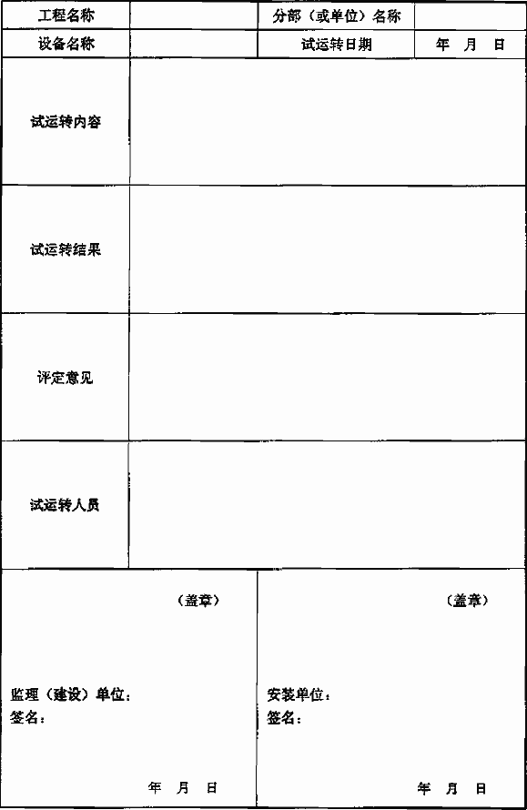 表A-7 系統(tǒng)聯(lián)合試運轉(zhuǎn)記錄