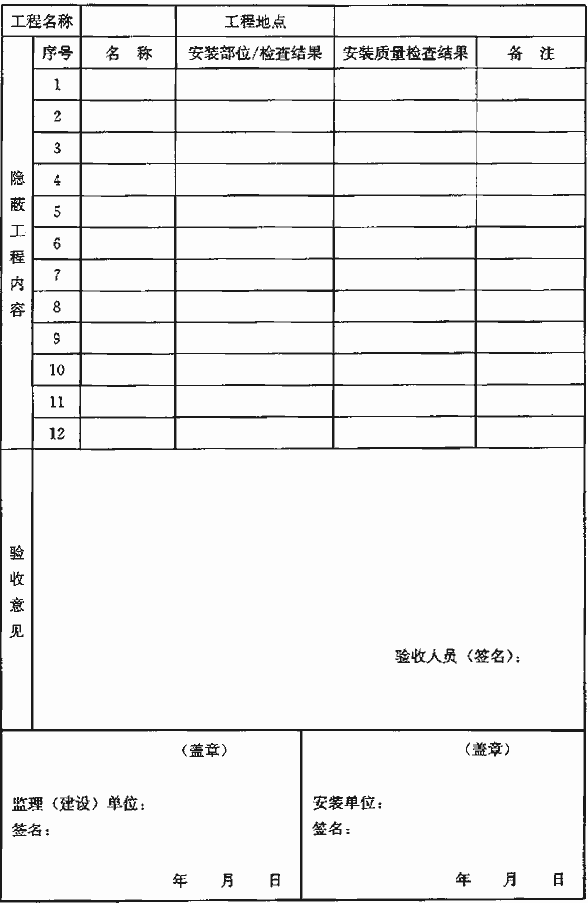 表A-2 隱蔽工程驗收記錄