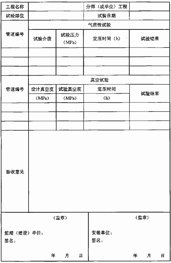 表A-3 制冷系統(tǒng)氣密性試驗記錄