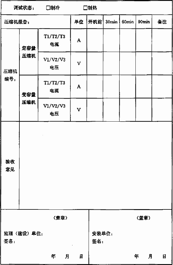 表A-6 壓縮機調(diào)試數(shù)據(jù)