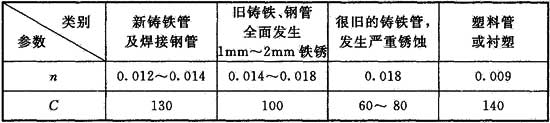n——管壁粗糙系數(shù),對于鋼管可取0.014,或按表E.0.1取值;