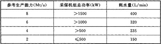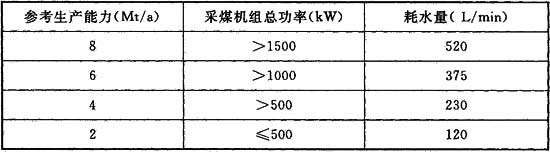 A.0.1 國產(chǎn)采煤機組的耗水量可采用表A.0.1中的數(shù)值。