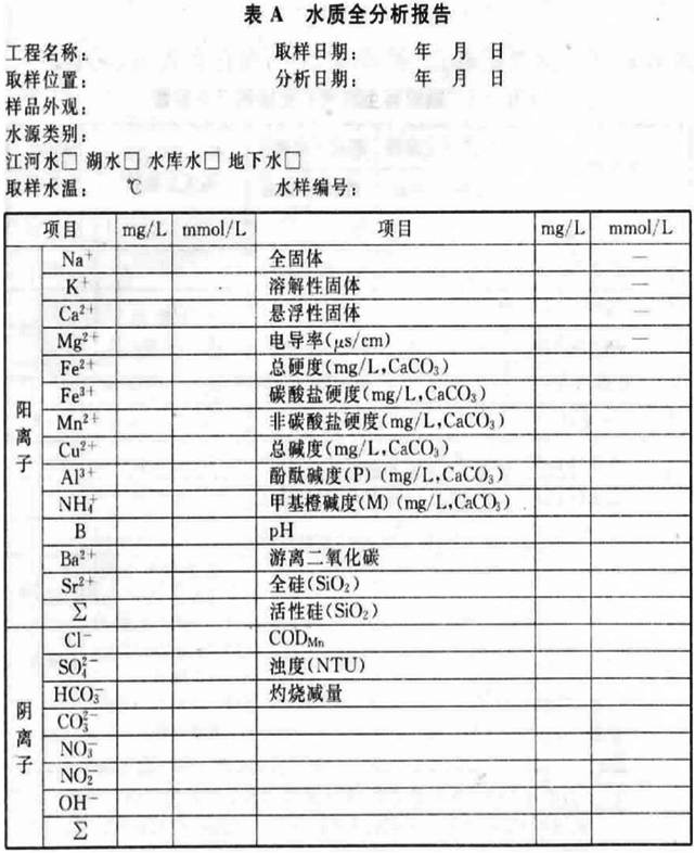 注:1當(dāng)水源用于反滲透系統(tǒng)處理系統(tǒng)時(shí),還應(yīng)化驗(yàn)水中Ba2+、Sr2+離子含量。