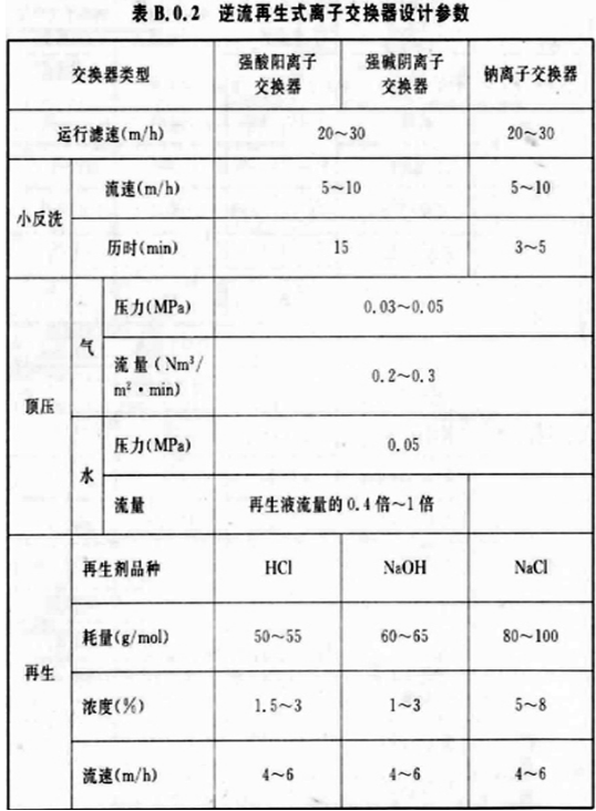 B.0.2 逆流再生式離子交換器的設(shè)計(jì)宜符合表B. 0. 2的規(guī)定。