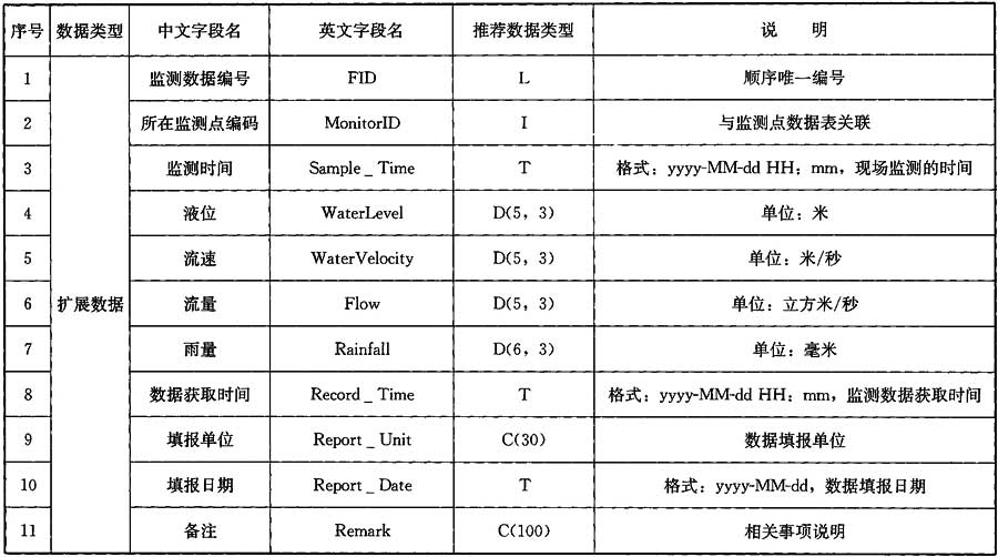 表A.0.25 液位、流量與雨量監(jiān)測(cè)數(shù)據(jù)