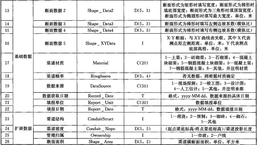A.0.5 排水渠數(shù)據(jù)應(yīng)符合表A.0.5的規(guī)定。