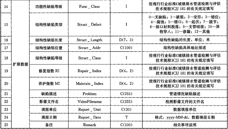 表A.0.27 管渠內(nèi)窺檢測(cè)數(shù)據(jù)