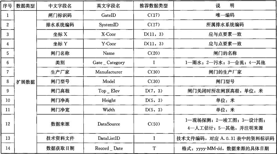 附錄B 城市排水防澇設(shè)施與要素的分類編碼及數(shù)據(jù)表說明