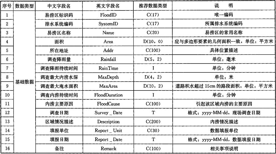 A.0.13 易澇區(qū)數(shù)據(jù)應(yīng)符合表A.0.13的規(guī)定。