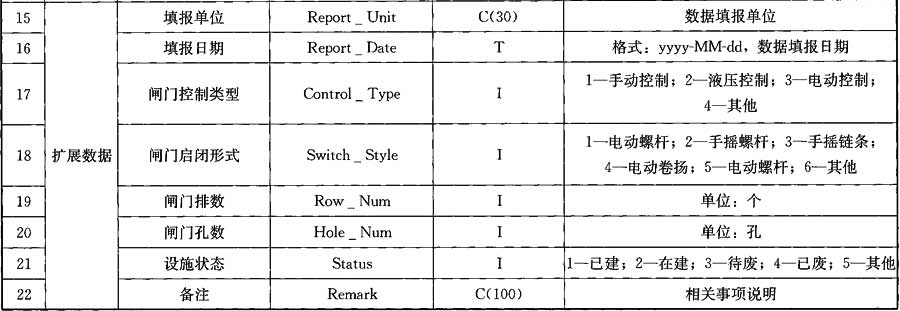 表A.0.11 閘門數(shù)據(jù)