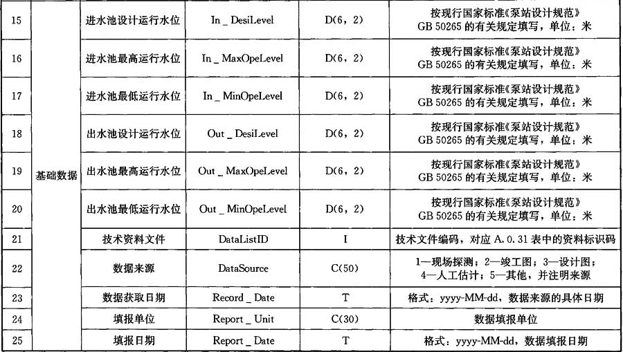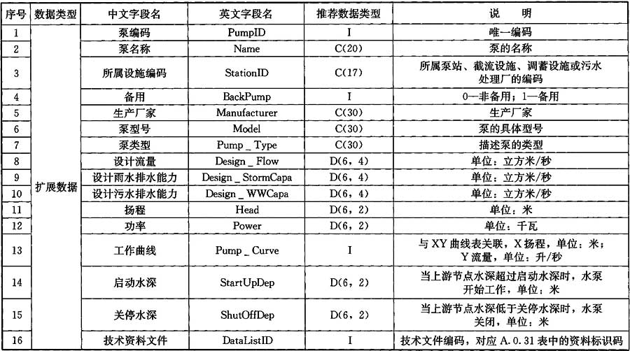 A.0.7 泵站數(shù)據(jù)應(yīng)符合表A.0.7的規(guī)定。