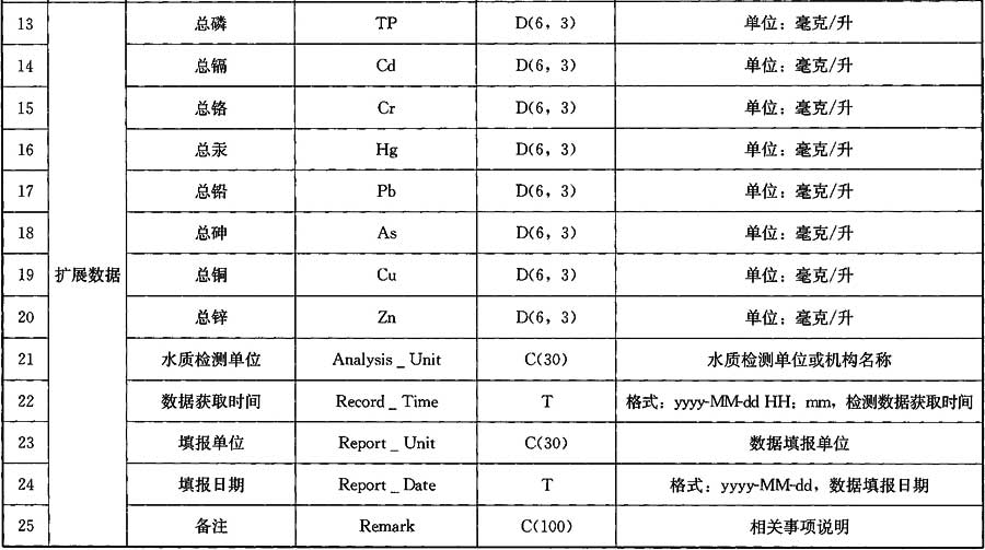 A.0.15 城市受納水體(河道)數(shù)據(jù)應(yīng)符合表A.0.15的規(guī)定。