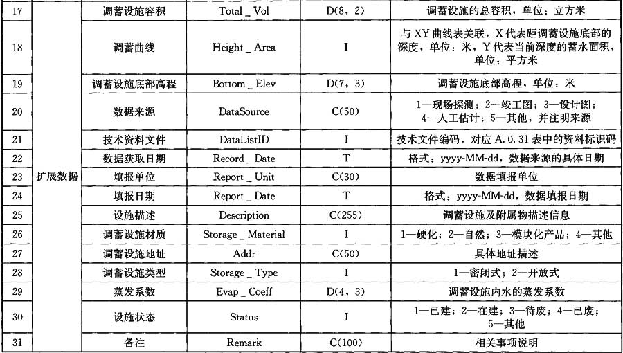 表A.0.9 調(diào)蓄設(shè)施數(shù)據(jù)
