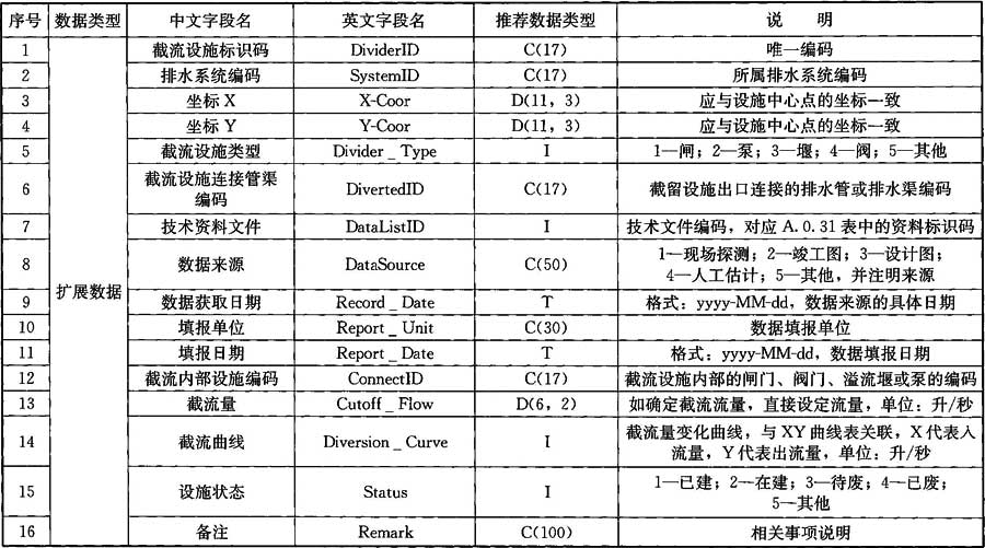 A.0.8 截流設(shè)施數(shù)據(jù)應(yīng)符合表A.0.8的規(guī)定。