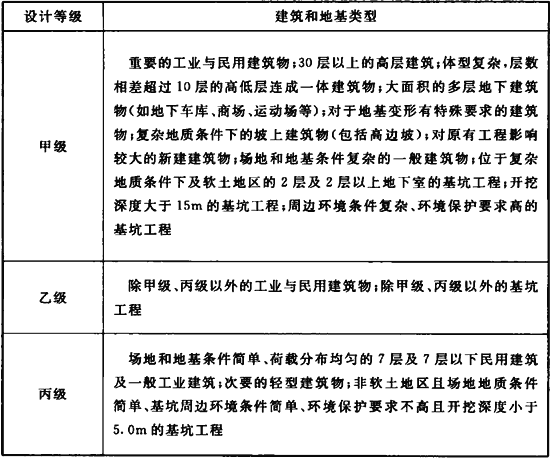 3.0.7 鹽漬土地區(qū)的建筑工程應根據(jù)其規(guī)模、性質(zhì)、重要性、破壞后果以及對鹽漬土的溶陷、鹽脹、腐蝕特性的敏感程度、場地復雜程度等劃分地基基礎(chǔ)設(shè)計等級,并應符合表3.0.7的規(guī)定。